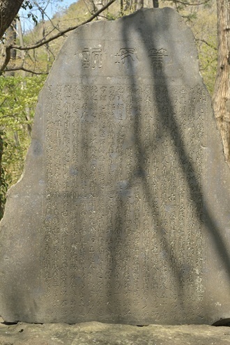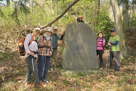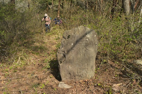 ▼風化してもう文字が読めない石碑を見ると阿津賀志山の山頂に飛び出る