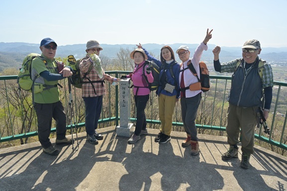 桃花のピンクのパッチワークに彩られた桃源郷福島盆地を見下ろす古戦場阿津賀志山289m。鎌倉殿との戦いに備えた日本三大防塁を探訪。