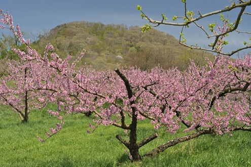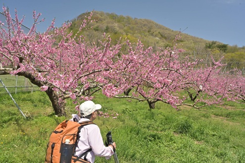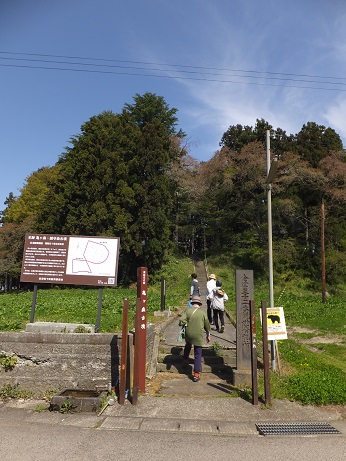 ▼今回は地元のあまり知れていない史跡の阿津賀志山と花盛りのモモ畑を周遊する