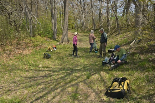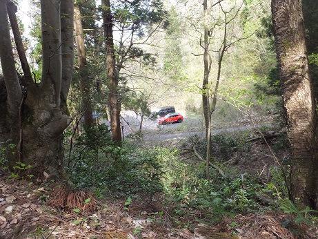 ▼旧奥州道中国見峠長坂跡のかろうじて残る東山道にて早めのランチタイムを