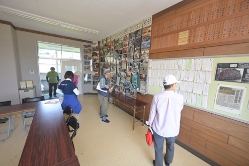 ▼かつて学び舎であったことから展示品には多くの児童の写真などが貼られていた