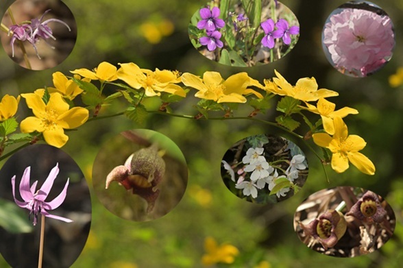 ▼阿津賀志山周辺などには春を告げる花々が咲き誇っていた