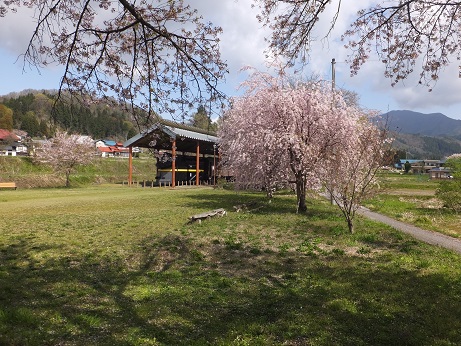 ▼喜多方市中心部は今は枝垂れサクラの名所です