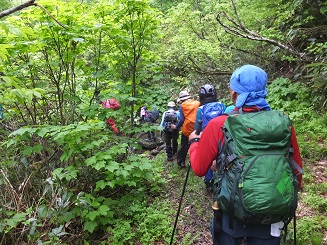 ▼2日目・石跳川ポイントから湯殿山を目指す