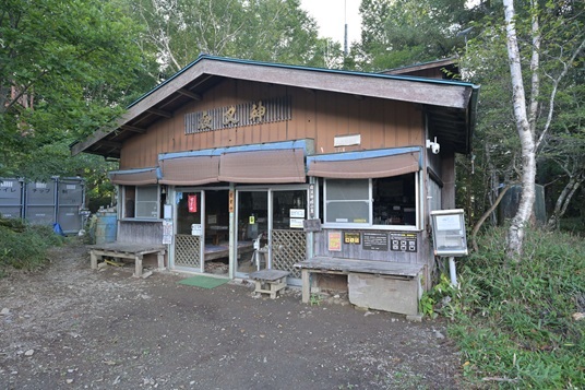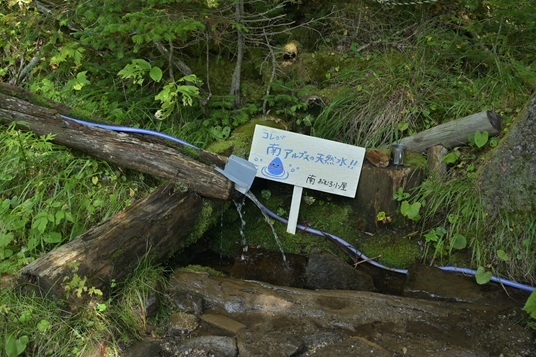 ▼先の小屋は水がなく湧き水の水量豊富なこの小屋でたっぷり補充してゆく