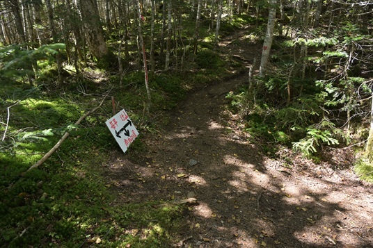 ▼薬師岳の山頂標識は稜線上の分岐に立っていた
