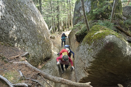 ▼この岩場の通路を抜け出ると大展望の砂払に飛び出る