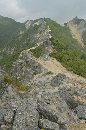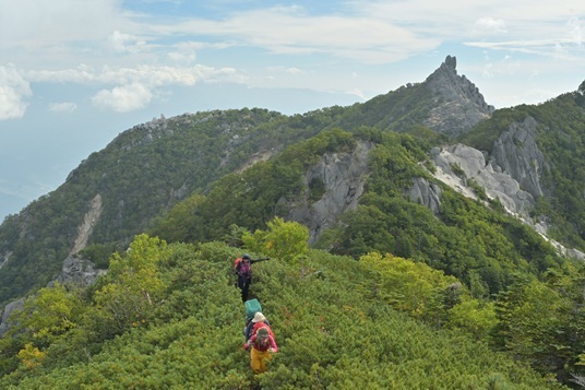 ▼観音岳を越すとオベリスクがひときわ目立つ地蔵岳と赤抜沢ノ頭が間近になって来る