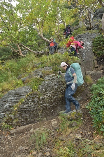 ▼高嶺から白鳳峠への急下降路は最も緊張するところだ( ;∀;)
