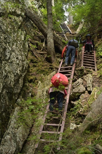 ▼コースの中間から下部付近には緊張するような6基の鉄バシゴが設置されている