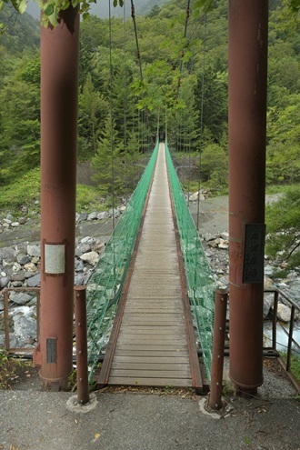 ▼広河原に出ると北岳に登る大樺沢へと通じる吊橋が見られる