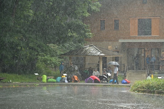 ▼広河原にようやく到着だがバスを待つ間は激しい雨降りが続いた