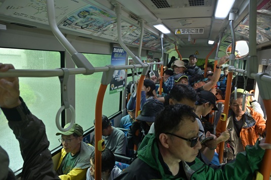▼満員のバスにて歩き出し点の夜叉神の駐車場へと戻るが歩くよりつらかった( ;∀;)