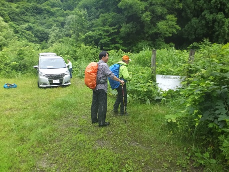 ▼10時登山口を出発する、広い駐車場は私たちの1台のみで