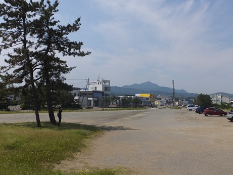 ▼潮のニオイする日本海を眺めると南方向にきれいなトンガリの米山が!!