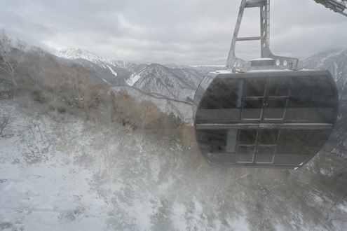 ▼新穂高ロープウェイは2基のゴンドラを乗り継ぎ標高2156mまで運び上げてくれる(^^♪