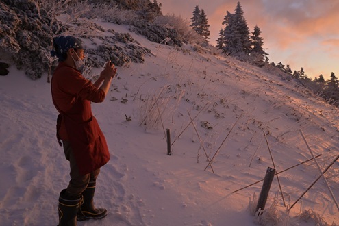 ▼滅多にない光景に山荘の方も朝日の撮影に没頭していた