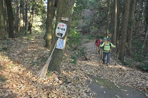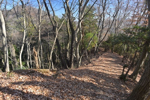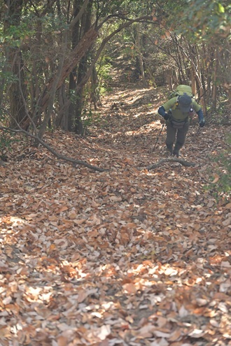 ▼滑りやすい落ち葉の中に隠れた邪魔者を慎重によけながら下る