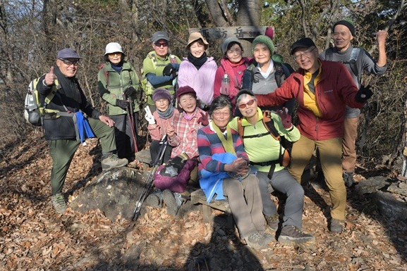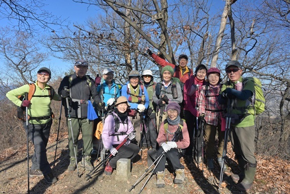 ▼諏訪岳はこの連山の最高峰 とはいっても323・7mだが山頂にて本年最後の全員の一枚