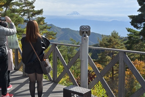 ▼ロープウェイの山頂駅の展望台から富士山を眺める