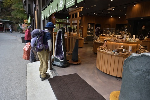 ▼仙娥滝に下り立つと周辺にはクリスタルストーンを売るお土産屋が立ち並ぶ