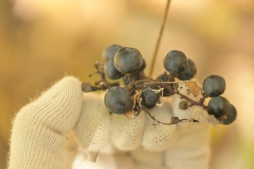 ▼落ち葉の上に落ちていた山ぶどうの実甘味が強かった