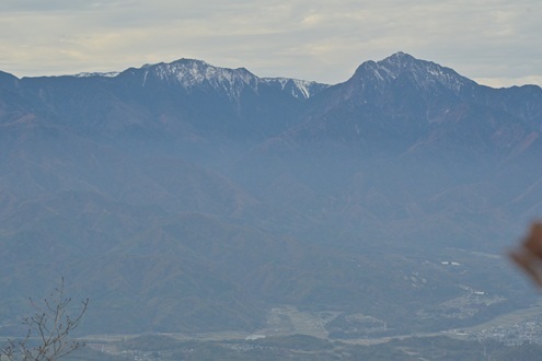 ▼昇仙峡パノラマ台から眺めた明日登る予定の茅ヶ岳と太刀岡山