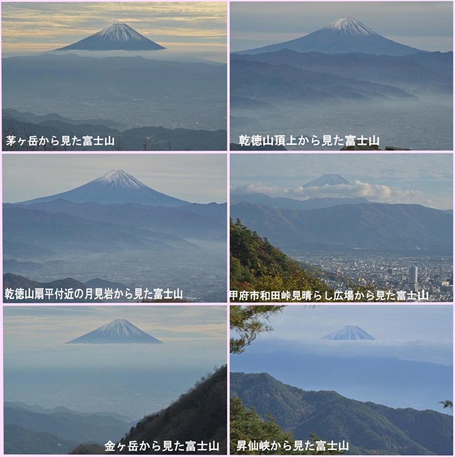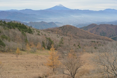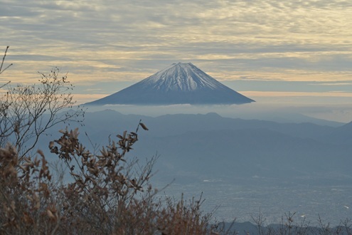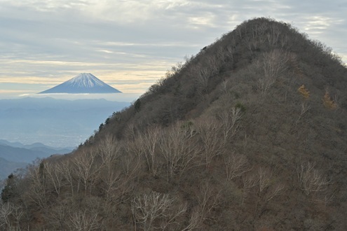 ▼金ヶ岳への途中から振り返って見た富士山と茅ヶ岳