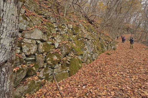 ▼幅広道の石垣が現れると今回の山旅は終わりとなり登山口に到着する