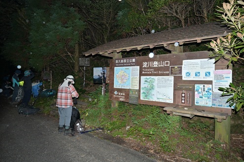 ▼まだ暗い中淀川登山口に到着したが先に来ていた登山者が数名居た