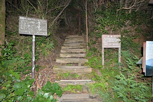 ▼ヘッドライトを燈して登山道へと入ってゆく