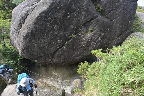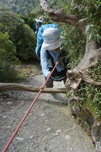▼所々ロープだよりに岩場を登るところもあり気が抜けない