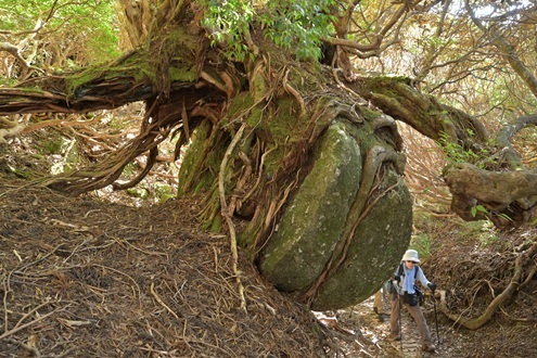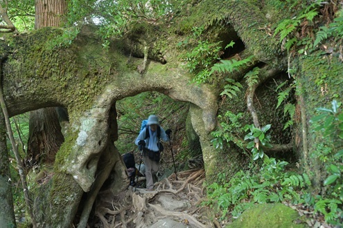 ▼さすがに屋久杉の本場で杉の根を潜る抜ける