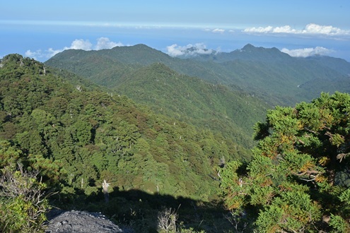 ▼宮之浦岳山頂直下から振り返って見た栗生岳や翁岳など