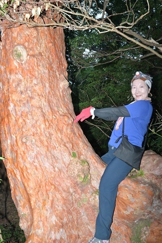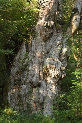 ▼宿からタクシーにて登山口に向かう途中ドライバーさんの好意で紀元杉を見せて頂いた