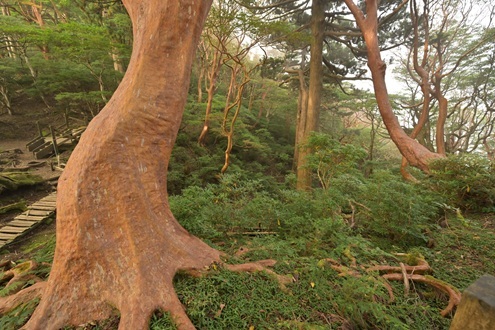 ▼巨樹の森幾度か根っこのトンネルを潜り抜ける