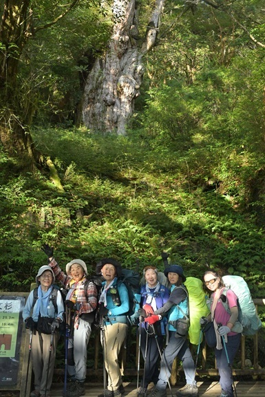 ▼縄文杉の前にて全員でその英気を頂く(笑)