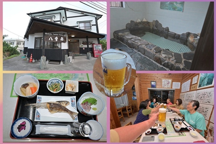 ▼3泊目は宮之浦地区の民宿八重岳さんにて無事下山の祝杯を上げた