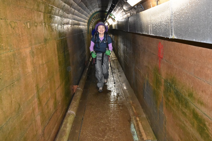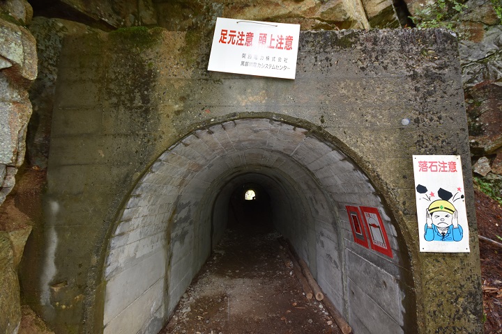 ▼志合谷の地下を潜り抜ける長い手掘りトンネルは
