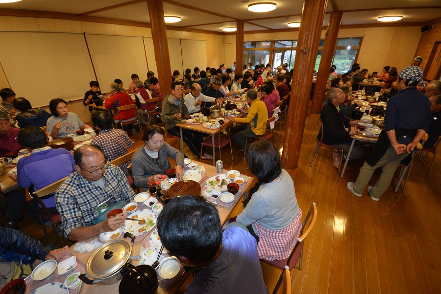 ▼日暮沢小屋ではSシェフ特製のカレーを美味しく味わう