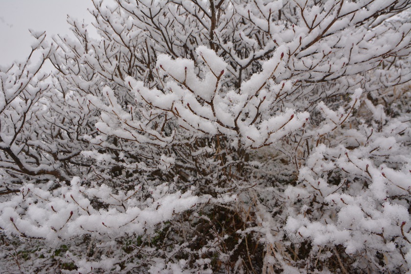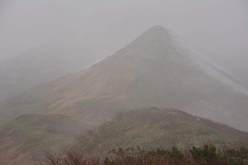 ▼いよいよ・・・縦走に踏み出すと間もなく雪が降りだした