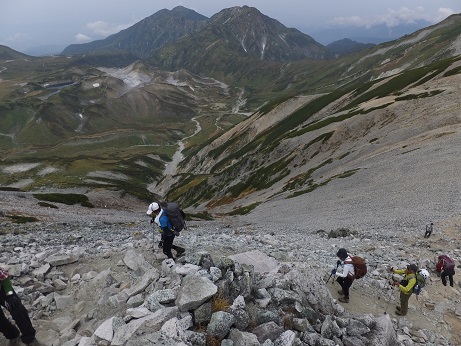 ◇素晴らしい天気の中、観光客に混ざり正面の別山尾根に急ぐ・・・