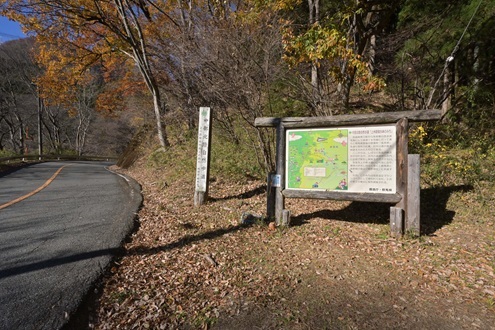 ▼碓氷小屋の立つ中部北陸自然歩道標柱が目印の旧道入口