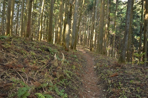 ▼傾斜が緩むと当時はなかったであろう杉の植林地内となる