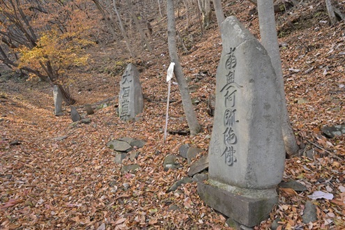 ▼ポイントではないが県道31号線からの分岐点に立つ石碑群