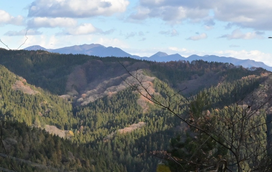 ▼昇仙峡パノラマ台から眺めた明日登る予定の茅ヶ岳と太刀岡山