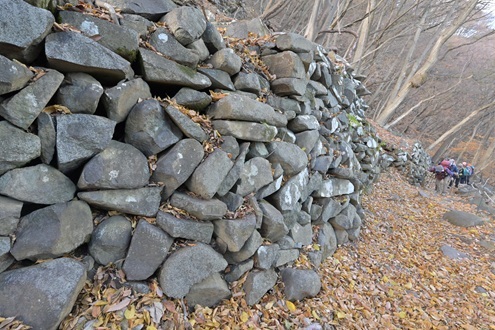 ▼さすがに古くからの街道らしく沿道の石積みがきっちりなされていた