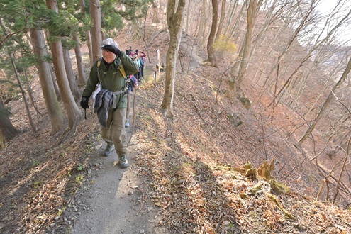 ▼山道に入ると手入れの良い歩道だが初めは急路だ