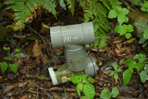 ▼いたるところに置かれたこの塩ビの装置はマングース退治の毒入りの罠だ