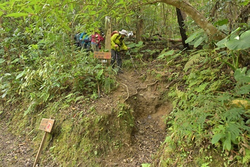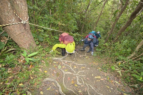▼最短コースだけにロープの張られた急坂でヒーこらひーこらと登ってゆく(笑)